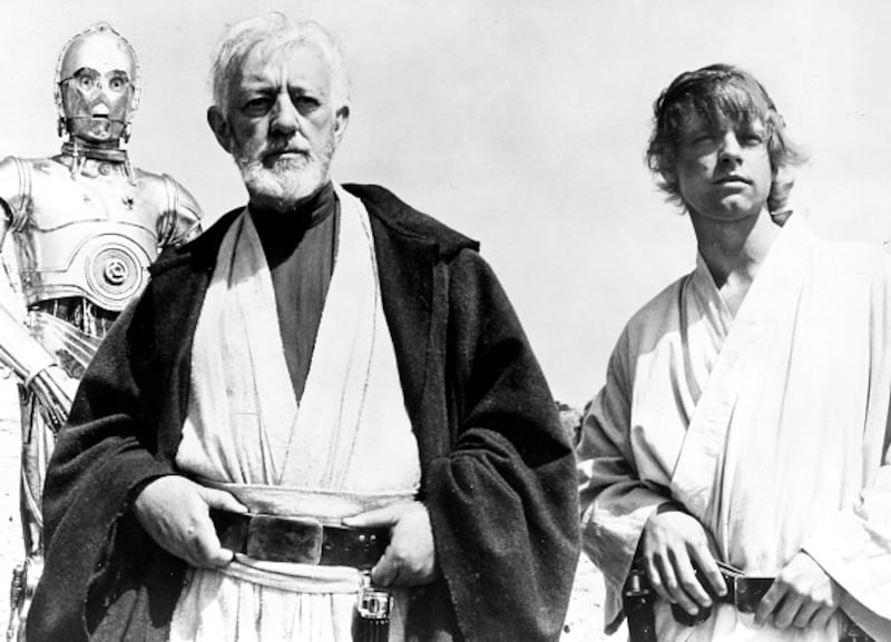 Returning to theaters Actors Mark Hamill, Carrie Fisher and Harrison Ford on the set of Star Wars: Episode IV - A New Hope written, directed and produced by Georges Lucas. (Photo by Sunset Boulevard/Corbis via Getty Images) (Sunset Boulevard/Corbis via Getty Images)