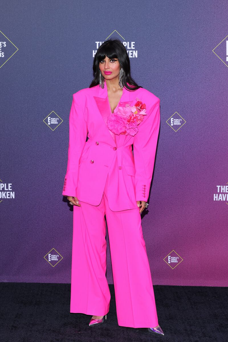 Photos: Stars shine on the People's Choice Awards 2020 red carpet In this image released on November 15, Jameela Jamil arrives at the 2020 E! People's Choice Awards held at the Barker Hangar in Santa Monica, California, and on broadcast on Sunday, November 15, 2020. (Rich Polk/E! Entertainment/NBCU Photo Bank via Getty Images)