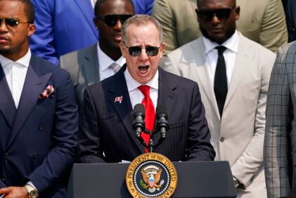Photos: 2021 Super Bowl champs Tampa Bay Buccaneers visit White House Tampa Bay Buccaneers co-owner Bryan Glazer, surrounded by members of the Tampa Bay Buccaneers, speaks during a ceremony on the South Lawn of the White House, in Washington, Tuesday, July 20, 2021, where President Joe Biden honored the Super Bowl Champion Tampa Bay Buccaneers for their Super Bowl LV victory. (AP Photo/Andrew Harnik) (Andrew Harnik/AP)