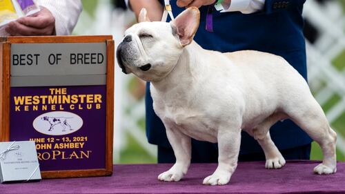 2021 Westminster Dog Show Mathew, a French bulldog, wins the top prize in his breed group at the 145th Annual Westminster Kennel Club Dog Show, Saturday, June 12, 2021, in Tarrytown, N.Y. (AP Photo/John Minchillo) (John Minchillo/AP)