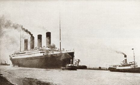 Titanic The White Star Line passenger liner R.M.S. Titanic embarking on its ill-fated maiden voyage. (Bettmann/Bettmann Archive)