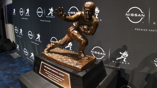 87th Heisman Trophy Ceremony A general view of the Heisman Trophy at the Marriott Marquis in New York on December 11, 2021 in New York City, NY. (Rich Graessle/Icon Sportswire via Getty Images)