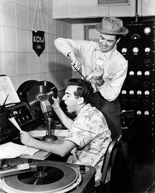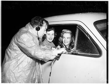 Art Laboe through the years Storm pictures, 15 March 1952. Sunset Boulevard and Sunset Plaza Drive;Benedict Canyon Drive 2300 Block;Beverly Glen Area;Broadcast from Wilshire Boulevard Drive-in;Art Laboe (Disc Jockey);Bernie Hawkes -- 17 years;Georgia Vodray -- 17 years.Sunset Boulevard & Sunset Plaza Drive; Benedict Canyon Drive; Los Angeles; California; USA. (Photo by Los Angeles Examiner/USC Libraries/Corbis via Getty Images) (University of Southern Californi/Corbis via Getty Images)