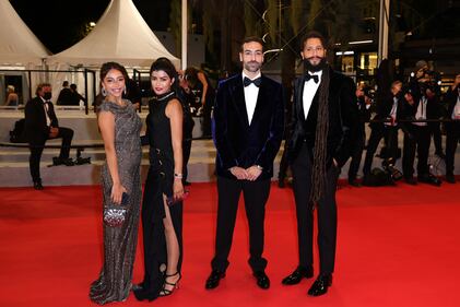 Photos: Cannes Film Festival 2021 red carpet, Day 10 Mila Al Zahrani, Sarah Taibah, Mohammed Al Turki and Rawkan Binbella attend the "Haut Et Fort (Casablanca Beats)" screening during the 74th annual Cannes Film Festival on July 15, 2021, in Cannes, France. (Andreas Rentz/Getty Images)