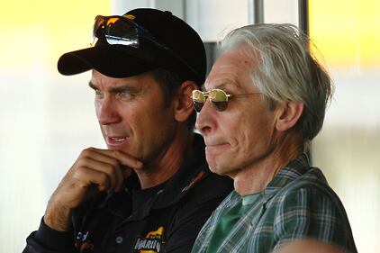 2014 Charlie Watts of the Rolling Stones watches the action from the players' pavilion with Western Australian coach Justin Langer during day one of the Sheffield Shield match between Western Australia and Tasmania at WACA on October 31, 2014 in Perth, Australia. (Photo by Will Russell/Getty Images) (Will Russell/Getty Images)