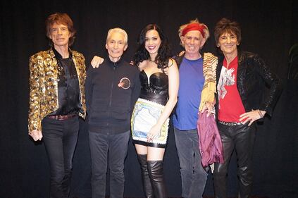2013 In this handout image provided by The Rolling Stones, Mick Jagger, Charlie Watts, Katy Perry, Keith Richards and Ronnie Wood pose backstage at the MGM Grand Garden Arena on May 11, 2013 in Las Vegas, Nevada. (Photo by The Rolling Stones via Getty Images) (Handout/Getty Images)