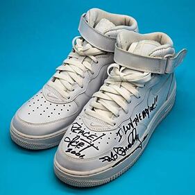 History for sale in NYC auction Nike Air Force 1 sneakers autographed by Ice-T and Fab 5 Freddy. The OGs of hip hop and the big screen autographed this pair of sneakers. The sneakers are believed to have been presented to Mayor Bloomberg by Ice-T and Fab 5 Freddy in 2008 at a City Hall press conference. (NYC DCAS)