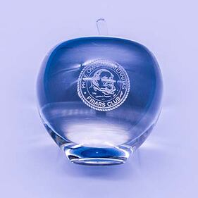 History for sale in NYC auction Clear apple paperweight Given to Mayor Dinkins as a gift by Diana Ross as a memento at a Friar's club party. The item is marked with a Friar's Club logo. (NYC DCAS)