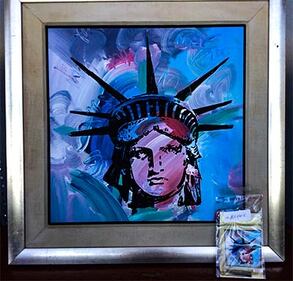History for sale in NYC auction Original painting by artist Peter Max depicting the face of the Statue of Liberty. Includes a hand written inscription on the back to Mayor Koch by the artist. (NYC DCAS)