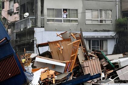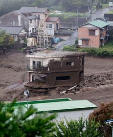 Photos: At least 19 missing after mudslides hit Tokyo houses A man observes damaged houses outside a building hit by mudslide following heavy rain at Izusan district in Atami, west of Tokyo, Saturday, July 3, 2021. A powerful mudslide carrying a deluge of black water and debris crashed into rows of houses in a town west of Tokyo following heavy rains on Saturday, leaving multiple people missing, officials said. (Kyodo News via AP) (éRñ{ãB/AP)