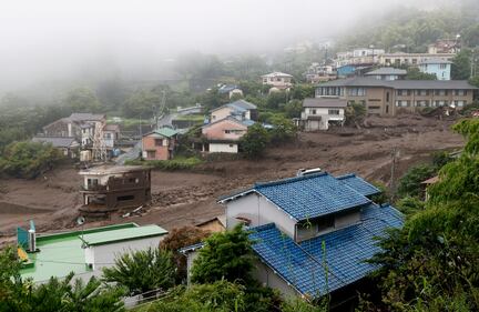 Photos: At least 19 missing after mudslides hit Tokyo houses Houses are damaged by mudslide following heavy rain at Izusan district in Atami, west of Tokyo, Saturday, July 3, 2021. A powerful mudslide carrying a deluge of black water and debris crashed into rows of houses in a town west of Tokyo following heavy rains on Saturday, leaving multiple people missing, officials said. (Kyodo News via AP) (éRñ{ãB/AP)