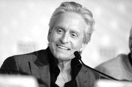 2013 CANNES, FRANCE - MAY 21: (EDITORS NOTE: This image has been converted to black and white) Actor Michael Douglas attends the 'Behind The Candelabra' press conference during The 66th Annual Cannes Film Festival at Palais des Festivals on May 21, 2013 in Cannes, France. (Photo by Dave J Hogan/Getty Images) (Dave J Hogan/Getty Images)
