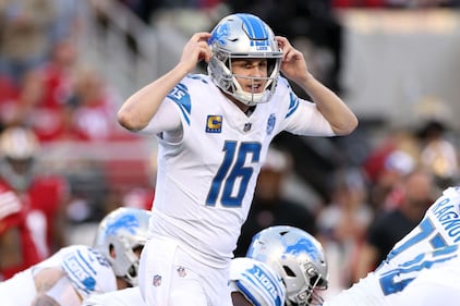 NFC Championship: Detroit quarterback Jared Goff (16) calls a play during the second quarter. (Ezra Shaw/Getty Images)