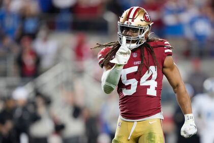 NFC Championship - Detroit Lions v San Francisco 49ers San Francisco's Fred Warner reacts after a defensive stop during the fourth quarter. (Thearon W. Henderson/Getty Images)