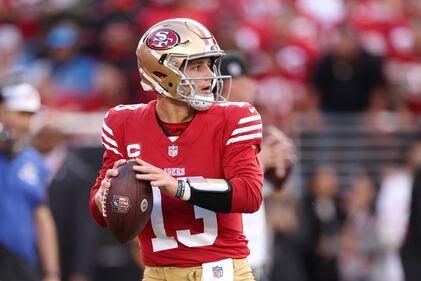 Brock Purdy: The 49ers quarterback (13) and his teammates ran over the Detroit Lions in the second half. (Thearon W. Henderson/Getty Images)