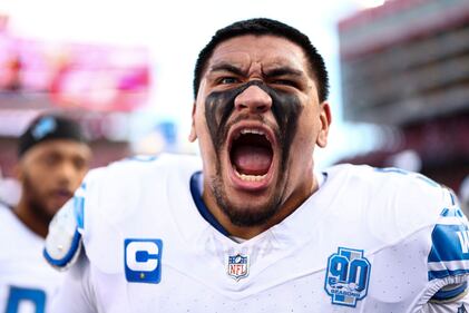 NFC Championship: Detroit's Penei Sewell was fired up before Sunday's game. (Kevin Sabitus/Getty Images)