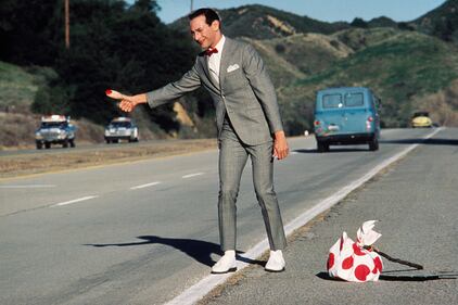 Through the years American actor, screenwriter, and producer Paul Reubens is Pee-wee Herman on the set of Pee-wee's Big Adventure, directed by Tim Burton. (Photo by Barry King/Sygma/Sygma via Getty Images) (Barry King/Sygma via Getty Images)