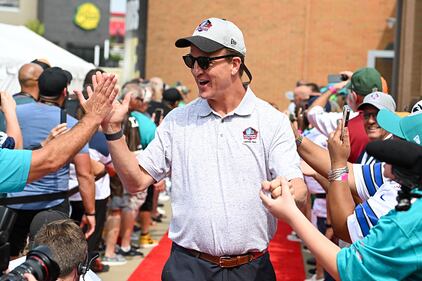 Through the years CANTON, OHIO - AUGUST 05: Hall of Fame quarterback Peyton Manning celebrates with fans as he is introduced prior to the 2023 Pro Football Hall of Fame Enshrinement Ceremony at Tom Benson Hall Of Fame Stadium on August 05, 2023 in Canton, Ohio. (Photo by Nick Cammett/Getty Images) (Nick Cammett/Getty Images)