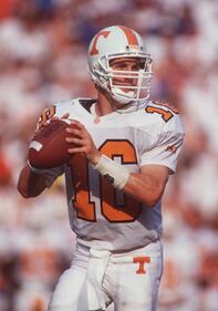 Through the years 16 Sep 1995: Quarterback Peyton Manning sets to throw a pass during the Volunteers 62-37 loss to the University of Florida at Florida Field in Gainesville, Florida. Mandatory Credit: Scott Halleran/Allsport (Scott Halleran/Getty Images)