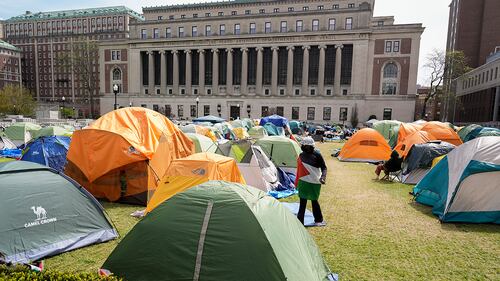 Police arrest nearly 300 in protests at Columbia University, CCNY Student protesters camp near the entrance to Hamilton Hall on the campus of Columbia University on April 30, 2024 in New York City. All classes at Columbia University have been held virtually today after school President Minouche Shafik announced a shift to online learning in response to recent campus unrest. (Pool/Getty Images)