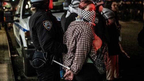 Police arrest nearly 300 in protests at Columbia University, CCNY Members of the NYPD detain protesters from the pro-Palestinian protest encampment and Hamilton Hall where demonstrators barricaded themselves inside on April 30, 2024 in New York City. Police arrested nearly 100 people as they cleared the university of demonstrators who were issued a notice to disband their encampment after negotiations failed to come to a resolution. University President Minouche Shafik has requested the NYPD maintain a presence on campus through at least May 17. (Stephanie Keith/Getty Images)