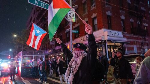 Police arrest nearly 300 in protests at Columbia University, CCNY A student protester parades a Palestinian flag outside the entrance to Hamilton Hall on the campus of Columbia University on April 30, 2024 in New York City. All classes at Columbia University have been held virtually today after school President Minouche Shafik announced a shift to online learning in response to recent campus unrest. (Pool/Getty Images)