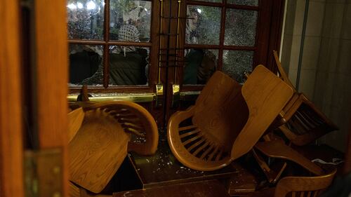Police arrest nearly 300 in protests at Columbia University, CCNY A demonstrator breaks the windows of the front door of the building in order to secure a chain around it to prevent authorities from entering as demonstrators from the pro-Palestine encampment barricade themselves inside Hamilton Hall, an academic building at Colombia University, on April 30, 2024 in New York City. Pro-Palestinian demonstrators marched around the "Gaza Solidarity Encampment" at Columbia University as a 2 P.M. deadline to clear the encampment given to students by the university passed. The students were given a suspension warning if they do not meet the deadline. Columbia students were the first to erect an encampment in support of Palestine, with students demanding that the school divest from Israel amid the Israel-Hamas war, where more than 34,000 Palestinians have been killed in the Gaza Strip. (Alex Kent/Getty Images)