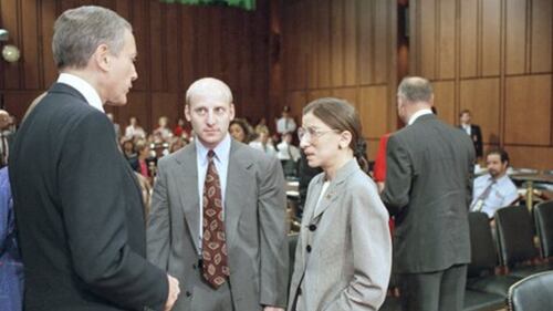 Ruth Bader Ginsburg Sen. Orrin Hatch, R-Utah, left, of the Senate Judiciary Committee, talks to Supreme Court nominee Ruth Bader Ginsburg, and her son, James during a break in her confirmation hearing on Capitol Hill in 1993. (Charles Tasnadi/Associated Press )