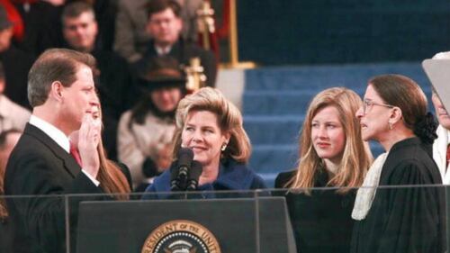 Ruth Bader Ginsburg Ruth Bader Ginsburg, right, administers the oath of office to Vice President Al Gore in January 1997. (Luke Frazza/AFP via Getty Images)