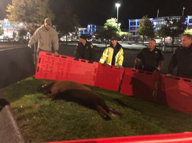 Photos: Seal leaves pond, waddles to police station