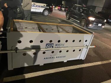Seal leaves pond, waddles to police station A seal that had been spotted swimming in a Massachusetts pond several days ago has been relocated after leaving the pond and heading to the police department. (Beverly Police Department)