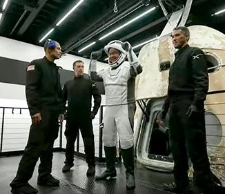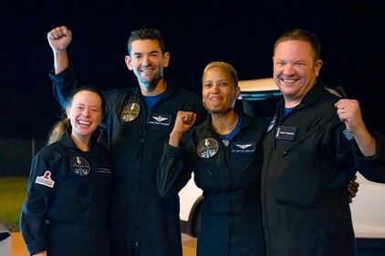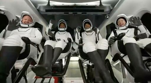 Photos: SpaceX Inspiration4 all-civilian crew safely returns to Earth This photo provided by SpaceX shows the passengers of Inspiration4 in the Dragon capsule on their first day in space. They are, from left, Jared Isaacman, Hayley Arceneaux, Chris Sembroski and Sian Proctor. (SpaceX via AP)