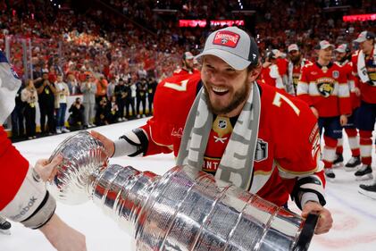 Game 7: Dmitry Kulikov of the Florida Panthers lifts the Stanley Cup after Florida's 2-1 victory against the Edmonton Oilers in Game 7. (Bruce Bennett/Getty Images)
