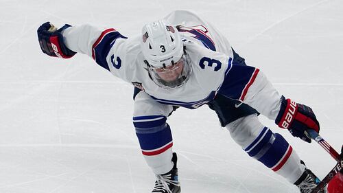 Silver medal United States' Kelly Pannek, left, and United States' Savannah Harmon help United States' Brianna Decker, center, on the ice after losing to Canada in the women's gold medal hockey game at the 2022 Winter Olympics, Thursday, Feb. 17, 2022, in Beijing. (AP Photo/Petr David Josek) (Petr David Josek/AP)