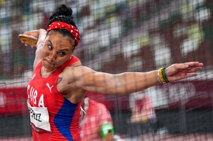 Photos: Valarie Allman wins gold in discus throw at Tokyo Olympics Yaime Perez, of Cuba, competes in the women's discus throw final at the 2020 Summer Olympics, Monday, Aug. 2, 2021, in Tokyo. (AP Photo/David J. Phillip)