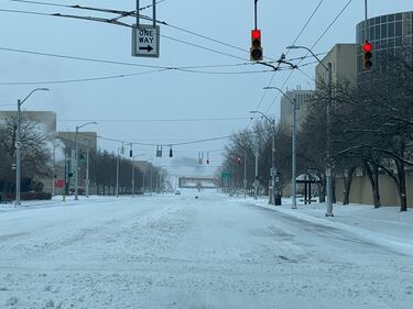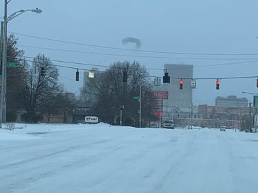 Winter weather Parkway West in Pittsburgh was snow covered Friday morning (WPXI)