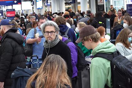 Winter weather CHICAGO, ILLINOIS - DECEMBER 22: Travelers check in for flights at O'Hare International Airport on December 22, 2022 in Chicago, Illinois. A winter weather system bringing snow, high winds, and sub-zero temperatures has wreaked havoc on holiday travel during one of the busiest days of the year for airlines. As of 8:00 AM more than 400 flights out O'Hare had been cancelled. (Photo by Scott Olson/Getty Images) (Scott Olson/Getty Images)