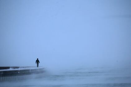 Winter weather CHICAGO, ILLINOIS - DECEMBER 23: A man walks along Lake Michigan at sunrise as temperatures hover about -8 degrees on December 22, 2022 in Chicago, Illinois. Sub-zero temperatures are expected to grip the city for the next couple of days with wind chill temperature dipping as low as -40 degrees. (Photo by Scott Olson/Getty Images) (Scott Olson/Getty Images)