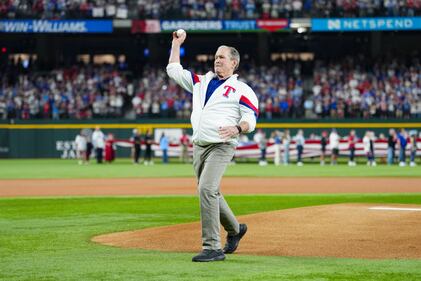 2023 World Series: Former President George W. Bush, who once owned the Texas Rangers, throws out the ceremonial first pitch before Game 1. (Mary DeCicco/MLB Photos via Getty Images)
