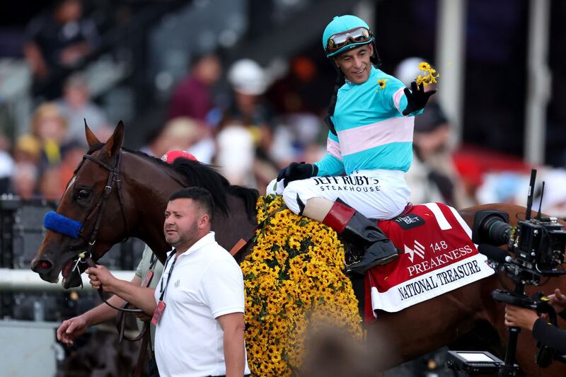 National Treasure’s victory snapped an 0-for-12 streak at the Preakness for jockey John Valazquez.