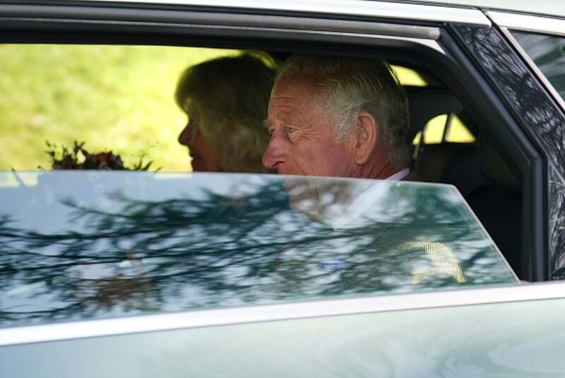 Remembering Queen Elizabeth II CRATHIE, ABERDEENSHIRE - SEPTEMBER 8: King Charles III and Queen Camilla depart Crathie Parish Church following a church service to mark the first anniversary of the death of Queen Elizabeth II on September 8, 2023 in Crathie, Aberdeenshire. Queen Elizabeth II passed away her Balmoral Castle, her private Scottish residence on September 8th 2022, bringing to an end her 70-year reign, the longest of a British monarch. Her funeral was held at Westminster Abbey on 19 September and she is buried in St George's Chapel at Windsor Castle. (Photo by Andrew Milligan - Pool/Getty Images) (Pool/Getty Images)