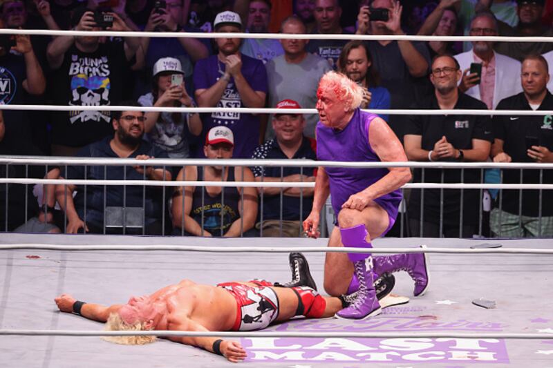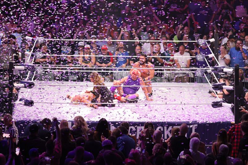 “All my family’s here,” Flair, who last returned to the ring in 2011, said after Sunday’s match. “We made jokes about me being married five times. All the kids are here. One wife, but all my granddaughters. My friends are here. I swear to God, guys. If I didn’t have enough pressure on me tonight, [expletive] Kid Rock walked into the locker room tonight.”