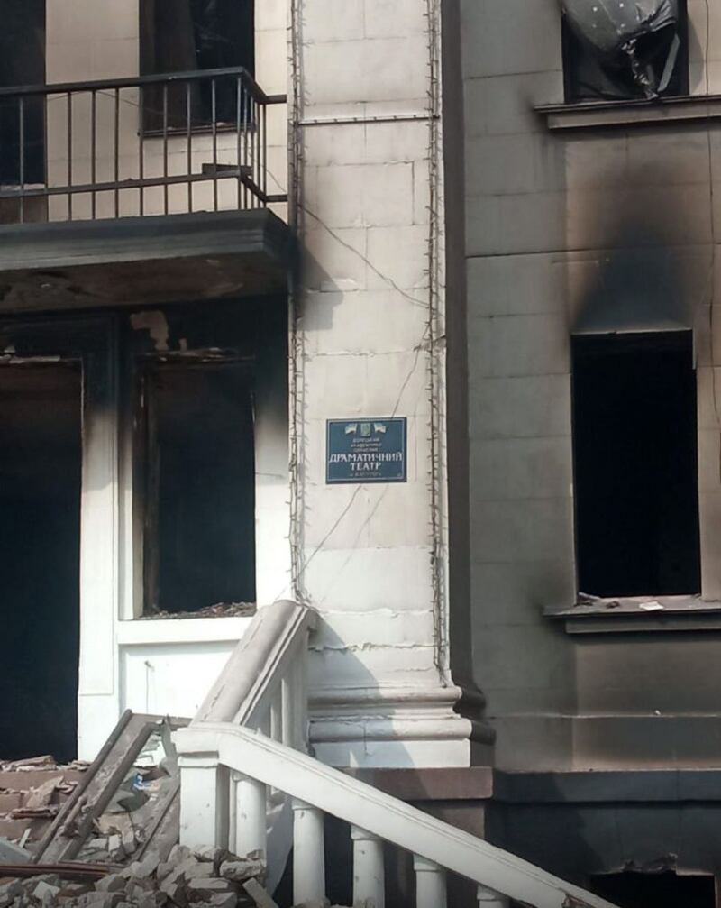 A massive inscription of the word “CHILDREN” in Russian, designed to be visible from the sky, appeared outside the theater on the day of the attack, according to the news agency.