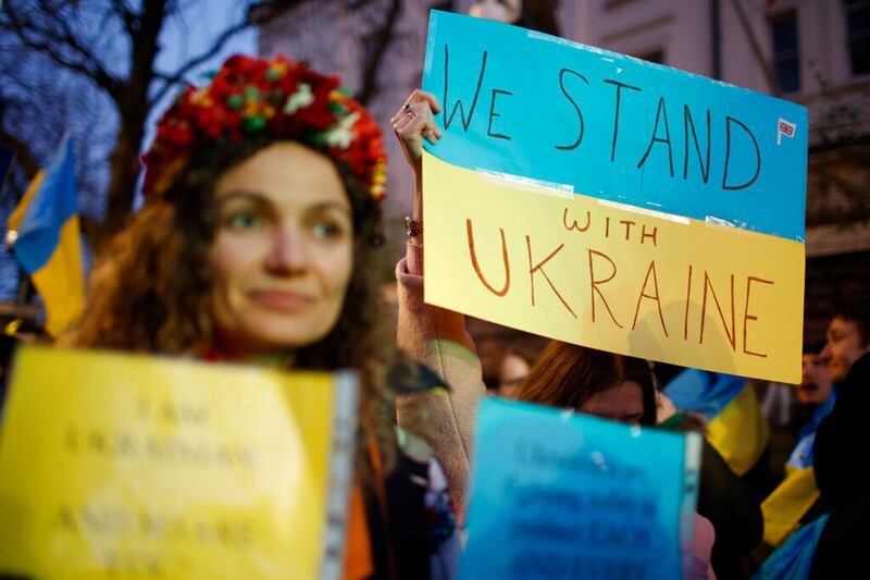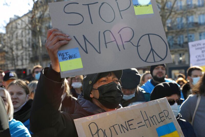 Update 4:03 p.m. EST Feb. 26: French President Emmanuel Macron decided Saturday evening to impose new financial and economic sanctions on Russia, The New York Times reported. According to a statement from the president’s office, the sanctions include freezing some Russian figures’ financial assets in the country.