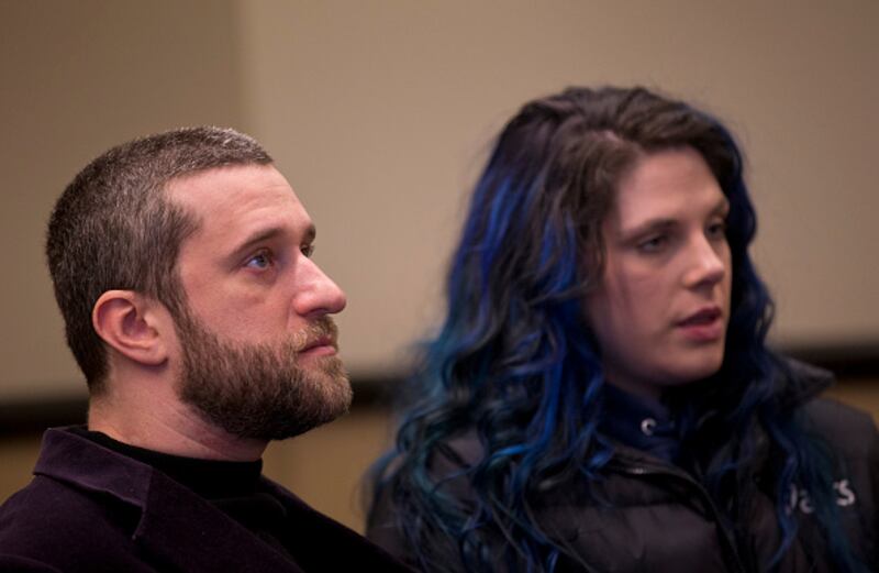 Through the years Dustin Diamond (L) waits for his status hearing with Amanda Schutz at Ozaukee County Courthouse on December 29, 2014 in Port Washington, Wisconsin. Diamond, best known for his role as Screech on "Saved by the Bell," was arrested for possession of a switchblade and charged with reckless endangerment, carrying a concealed weapon and disorderly conduct on December 26, 2014 in Ozaukee County, Wisconsin. (Photo by Jeffrey Phelps/Getty Images) (Jeffrey Phelps/Getty Images)