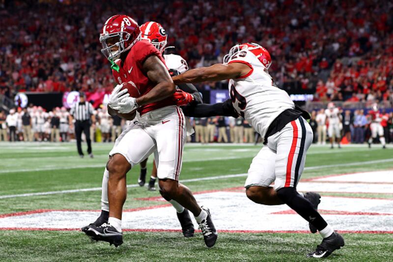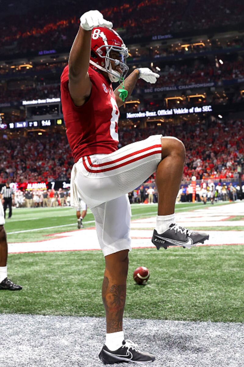 Photos: Georgia, Alabama face off in SEC Championship Game 2021 John Metchie III of the Alabama Crimson Tide reacts after scoring a touchdown in the second quarter of the SEC Championship game against the Georgia Bulldogs at Mercedes-Benz Stadium on December 4, 2021, in Atlanta. (Kevin C. Cox/Getty Images)