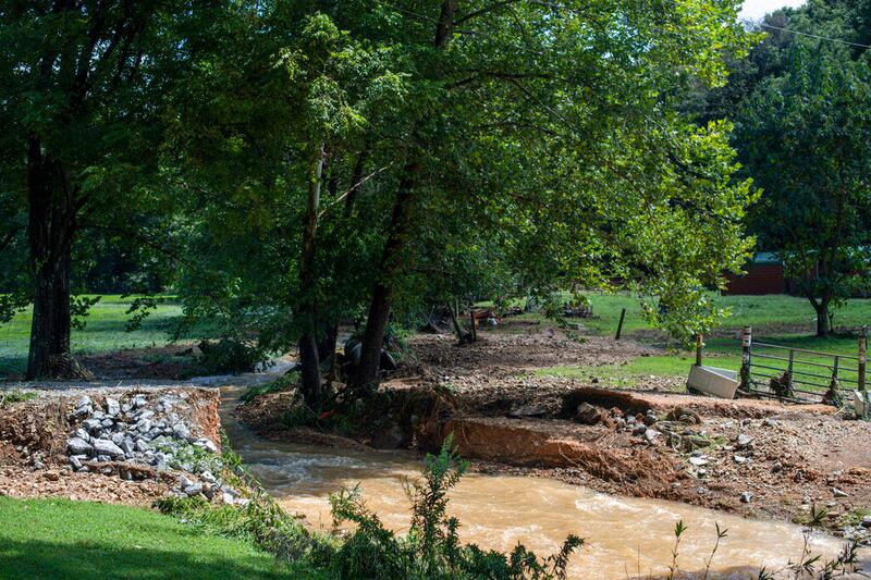 Tennessee flooding Debris from flooding is strewn along Sam Hollow Road following heavy rainfall on Saturday, Aug. 21, 2021, in Dickson, Tenn. (Josie Norris/The Tennessean via AP) (Josie Norris/AP)