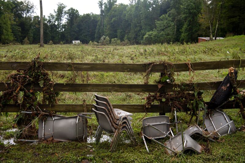 Tennessee flooding Chairs picked up by flood water are strewn along Sam Hollow Road following heavy rainfall on Saturday, Aug. 21, 2021, in Dickson, Tenn. (Josie Norris/The Tennessean via AP) (Josie Norris/AP)