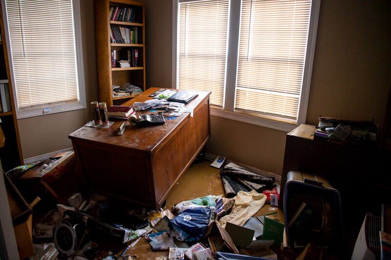 Tennessee flooding The office of the Rhodes family is in disarray after their home flooded following heavy rainfall on Saturday, Aug. 21, 2021, in Dickson, Tenn. (Josie Norris/The Tennessean via AP) (Josie Norris/AP)