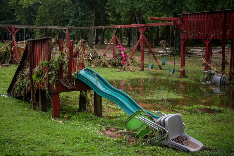 Tennessee flooding The playground at Jason Chapel Church is covered in debris following heavy rainfall and flooding on Saturday, Aug. 21, 2021, in Dickson, Tenn. (Josie Norris/The Tennessean via AP) (Josie Norris/AP)